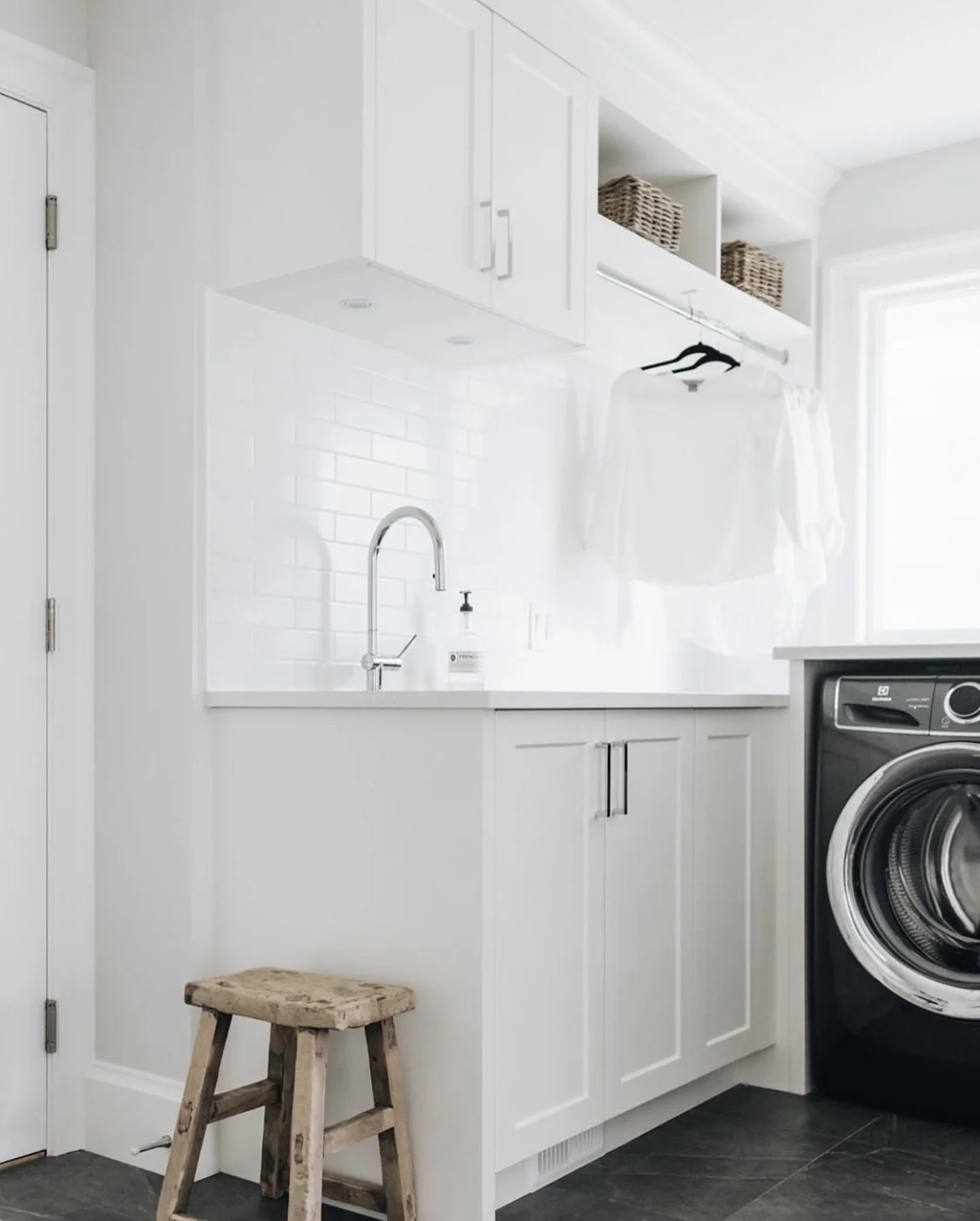 Keep Things Accessible - Store step ladders, drying racks, and ironing boards within reach. Depending on your layout, you might even be able to slide them in between your washer and dryer so they don’t take up extra space!